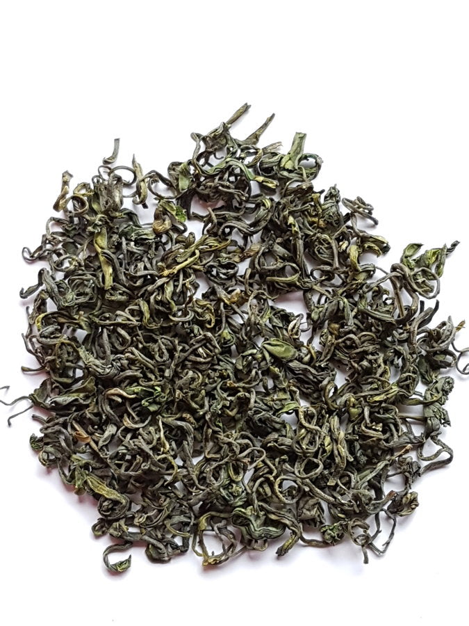 This majestic green tea is hand-harvested at the early onset of spring from the renowned mountain peak of Dung Ting in China, celebrated worldwide. Bi Luo Chun tea is meticulously crafted with an extraordinarily fine plucking technique, primarily composed of tender young buds. Its exceptional refinement is marked by its round shape, sweet bouquet, crystal-clear infusion, and the delightful presence of vegetal and herbal notes. This is a grand tea, ideal for special occasions. Origin: Jiangsu Province, China.