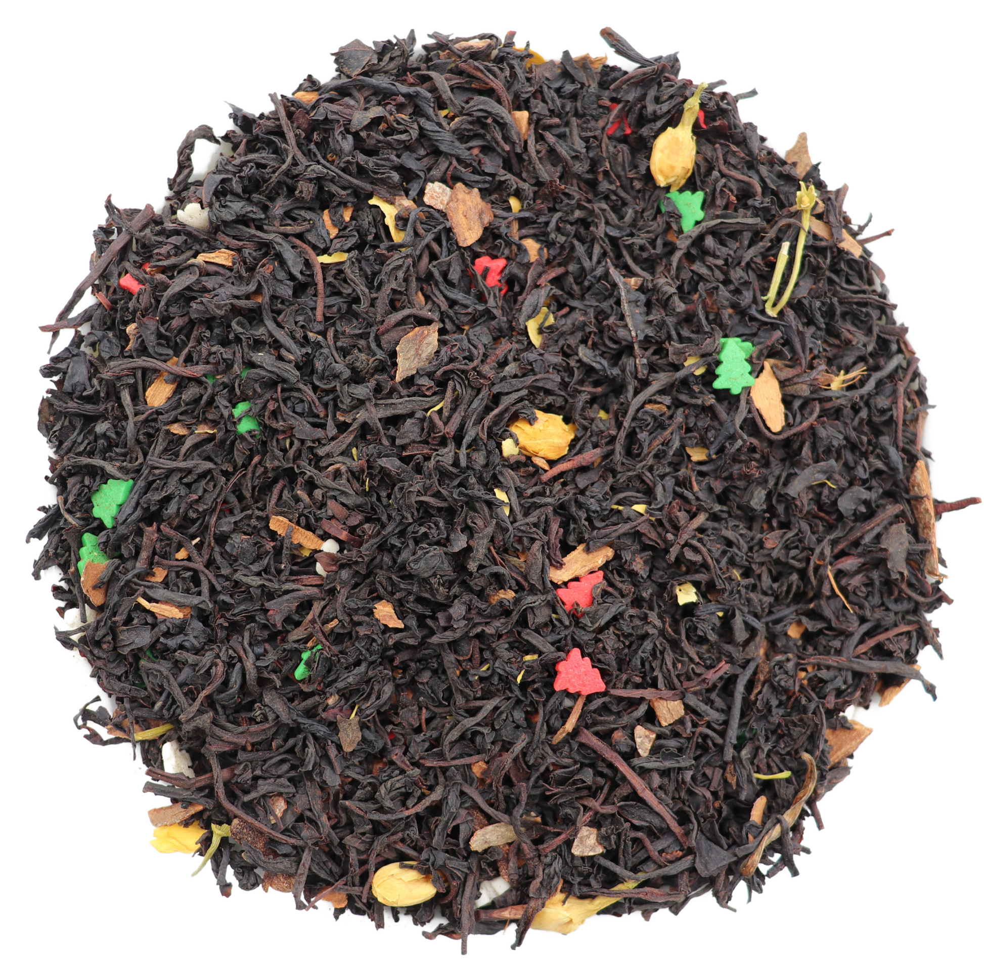 IngredientsBlack tea, Candy*, Cinnamon, Clove, Jasmine petals, Natural flavors (organic compliant) (*Candy: Sugar, Rice flour, Vegetable oil, Corn starch, Arabic+Cellulose gum,Color R, Confectioner glaze, Carrageenan, Soy lecithin, Red#40, Yellow#5+#6, Blue#1 dye) ** Contains Soy**