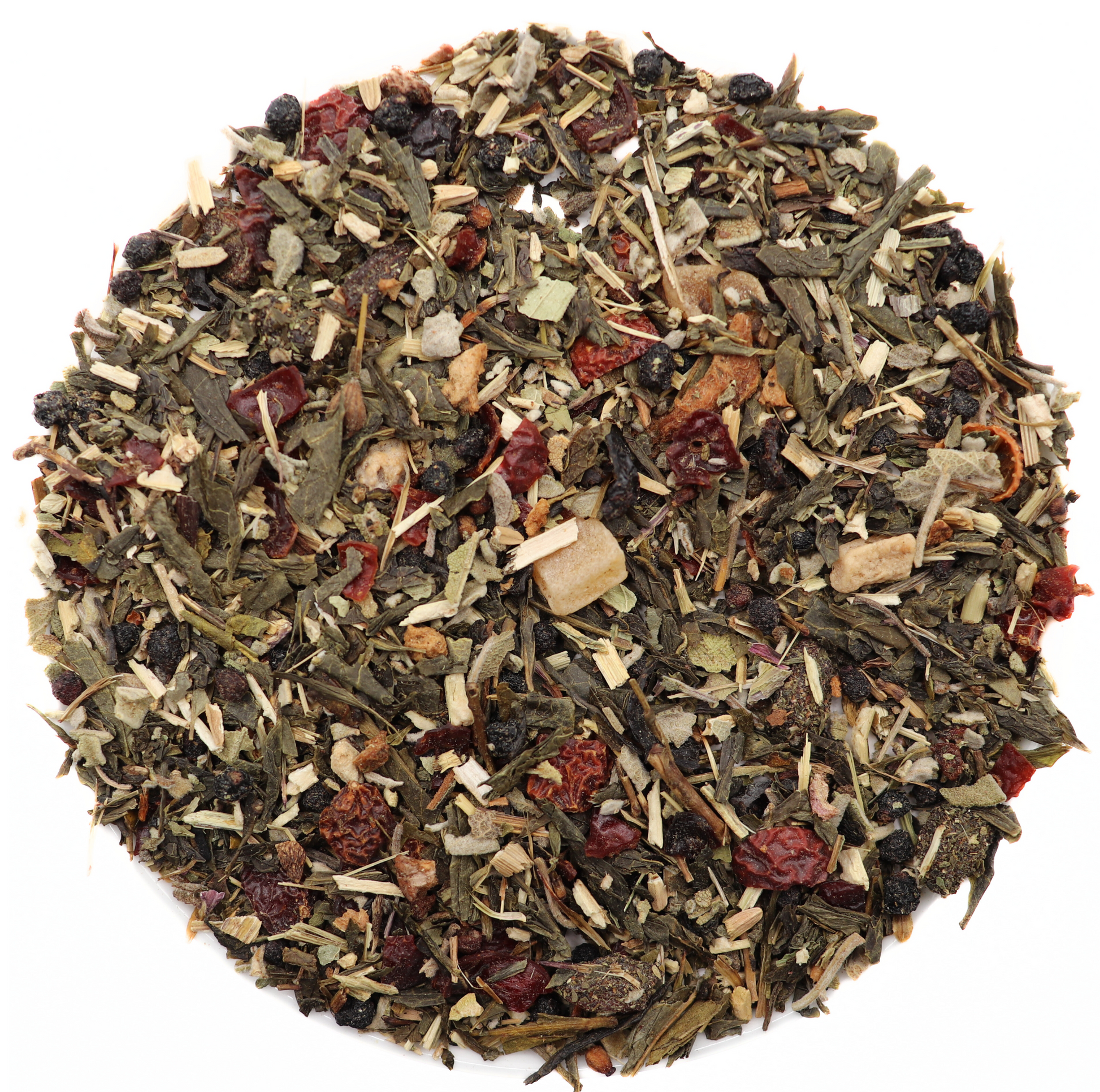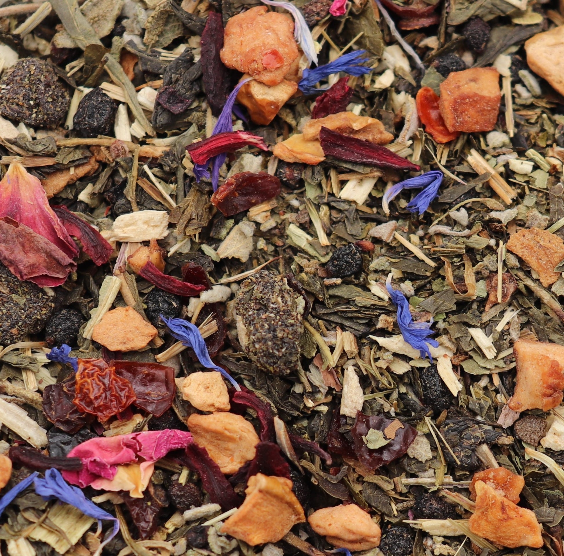 Luxury Ingredients: Green tea, Echinacea, Elderberries, Rosehip, Mango, Goji berries, Sage, Raspberry pieces, Natural flavors (organic compliant)