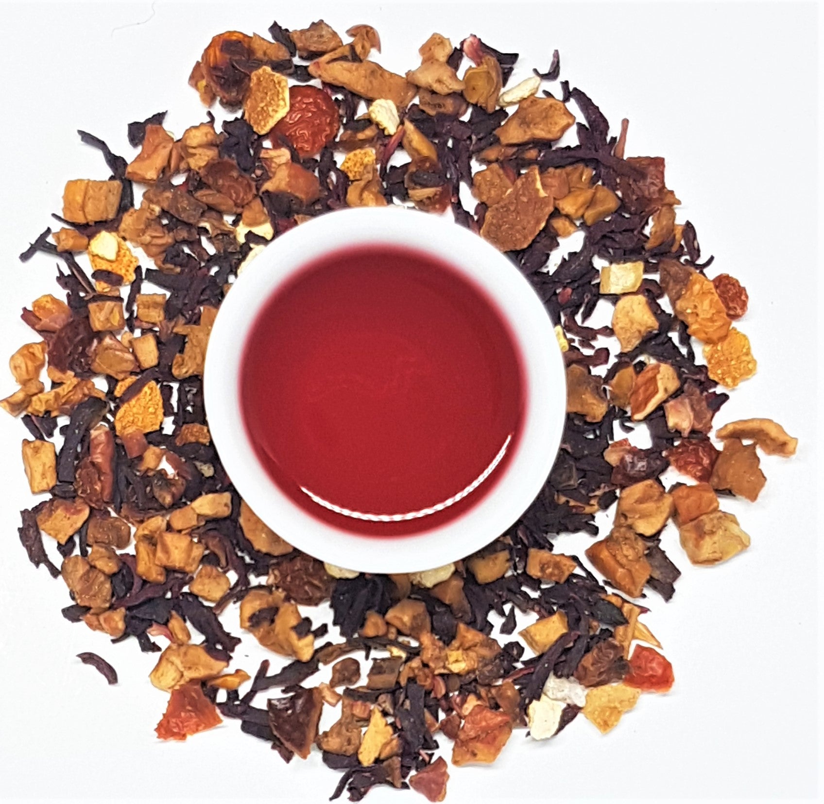 ingredients: Apple, Cinnamon, Hibiscus, Ginger, Stevia, Cardamom, Clove, Cornflower petals, Pepper, Natural flavors (organic compliant).